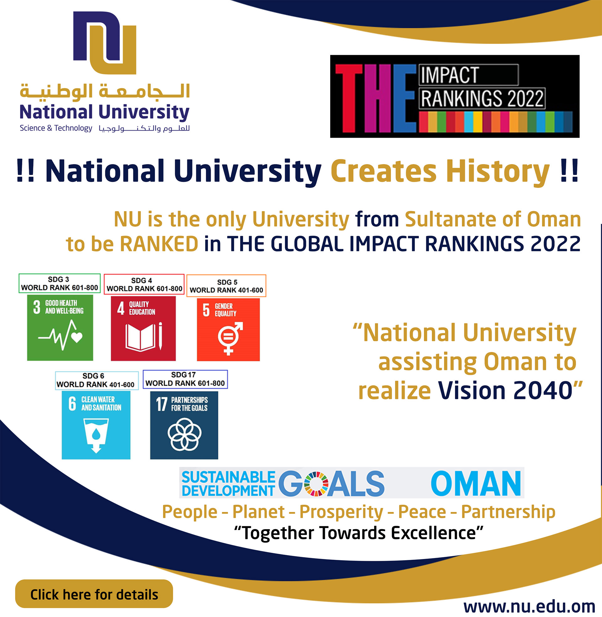 الجامعة الوطنية للعلوم والتكنولوجيا هي الجامعة الوحيدة من سلطنة عمان التي تدخل ضمن تصنيف التايمز العالمي لتأثير الجامعات 2022
