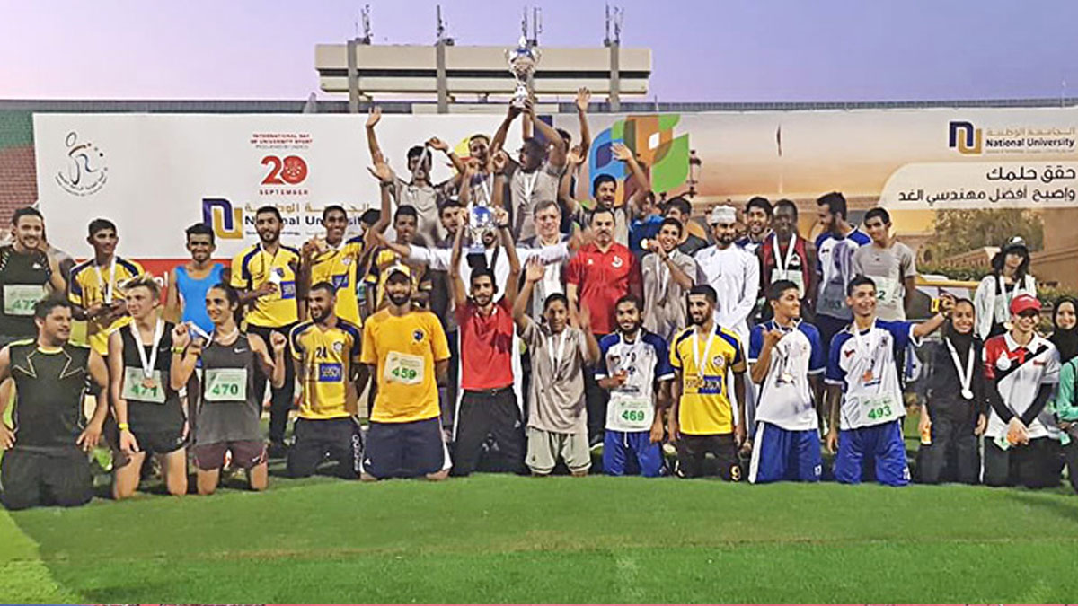 أقامت الجامعة الوطنية للعلوم والتكنولوجيا فعالية ماراثون اليوم العالمي للرياضة الجامعية في مجمع السلطان قابوس الرياضي ببوشر