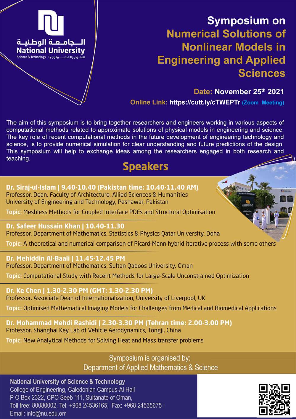 Online Symposium on Numerical Solutions of Nonlinear Models in Engineering and Applied Sciences