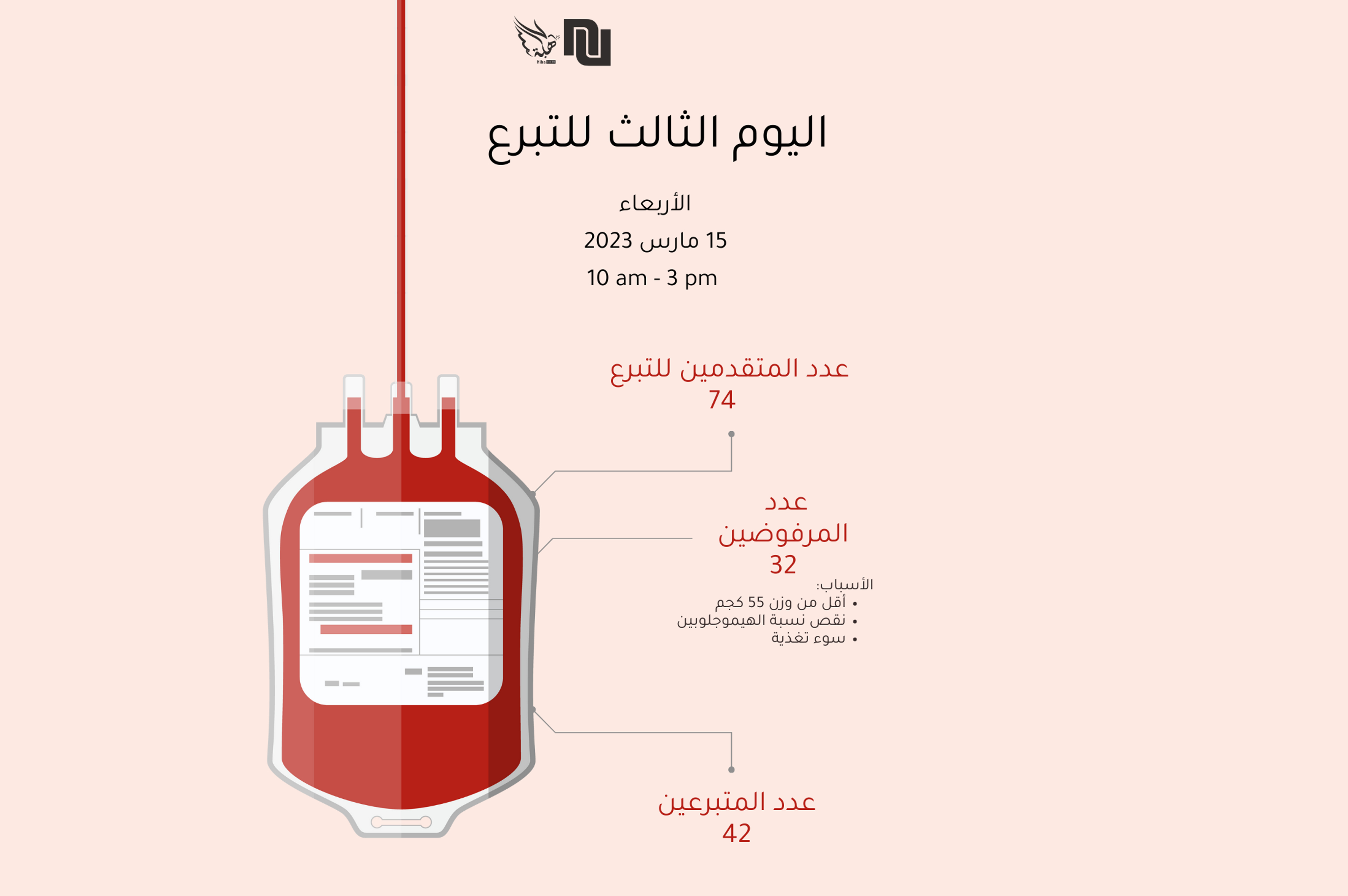 نظم فريق هبة التطوعي بالتعاون مع مكتب شؤون الطلبة حملة انقذ حياة الثانية ، وهي مبادرة نبيلة تهدف إلى تشجيع التبرع بالدم وتبديد المفاهيم الخاطئة المحيطة به. وباستجابة رائعة من الطلبة والموظفين، نجحت الحملة إلى استقطاب 150 متبرعا في غضون ثلاثة أيام. وعلى الرغم من التحديات التي يواجهها المانحون المحتملون، بما في ذلك العوامل الغذائية...