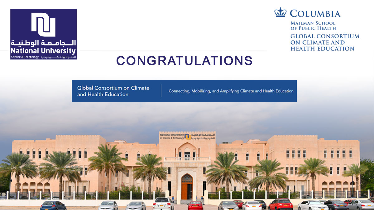 كلية الطب والعلوم الصحية بالجامعة الوطنية، سلطنة عُمان، تنال عضوية الاتحاد العالمي للتثقيف المناخي والصحي (GCCHE)،