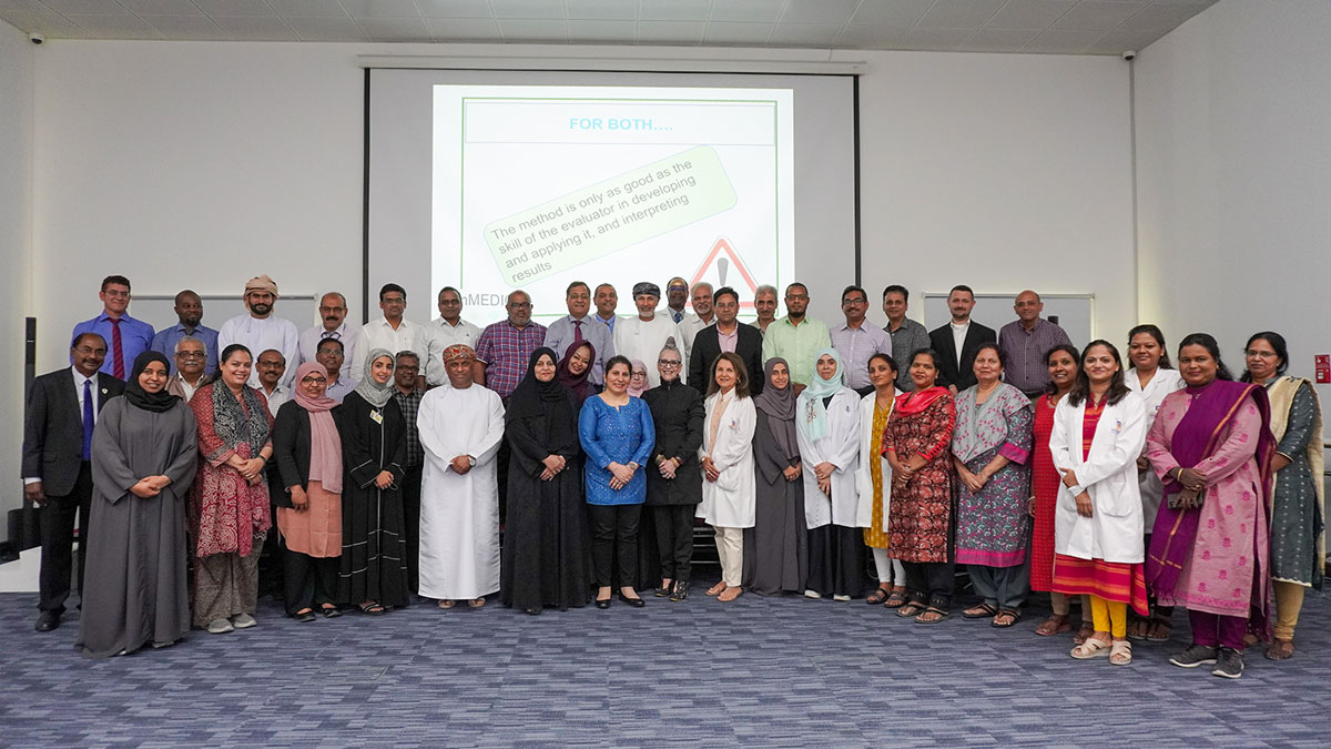عقدت وحدة التعليم الطبي والفريق الأساسي للبحوث في التعليم الطبي (RIME) بكلية الطب والعلوم الصحية – الجامعة الوطنية للعلوم والتكنولوجيا ورشة عمل لتطوير قدرات أعضاء هيئة التدريس حول “تقييم البرامج وإدارة الجودة“، حيث استضافت الجامعة لهذه الورشة أ. د. جانيت غرانت مديرة مركز التعليم الطبي (CenMEDIC) وهي أستاذة فخرية بكلية الطب بجامعة لندن بالمملكة المتحدة، ومن كبار العلماء الباحثين في جامعة إلينوي – كلية الطب بشيكاغو، ورئيسة تحديث المعايير في الاتحاد العالمي للتعليم الطبي. تم تنظيم هذه الفعالية في يوم الثلاثاء 21 فبراير 2023 بقاعة الباطنة، الطابق الثاني، الحرم الجامعي لكلية الطب والعلوم الصحية – صحار. وحفلت الورشة بتناول ومناقشة العديد من القضايا والأساليب والأطر التي من شأنها أن تعين المشاركين في الورشة على التفكير والتحليل والتخطيط لتقييم برامج إدارة وتحسين الجودة في مؤسساتهم. وقد شهدت الورشة مشاركة ممثلون تم اختيارهم من مختلف كليات الجامعة الوطنية وكليات العلوم الطبية والصحية الأخرى من سلطنة عمان بالإضافة إلى أعضاء هيئة التدريس في كلية الطب والعلوم الصحية.