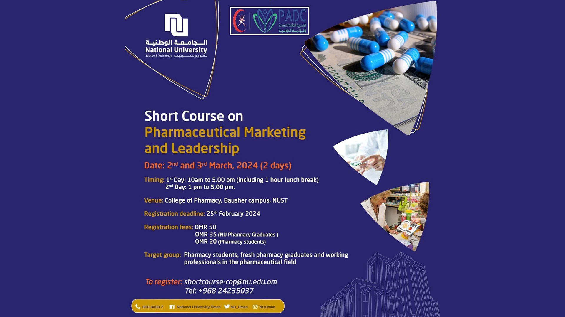 The National University signed MoC with Omani Pharmaceutical Society aiming of enhancing scientific cooperation between the two sides. MoC was signed by Dr.Khalid Al-Balushi,Dean of the College of Pharmacy & Dr.Fatima Al-Raisi,Chairperson of the Board of Directors of the Society.