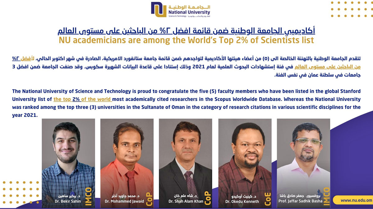 أكاديميي الجامعة الوطنية ضمن قائمة افضل ٢% من الباحثين على مستوى العالم