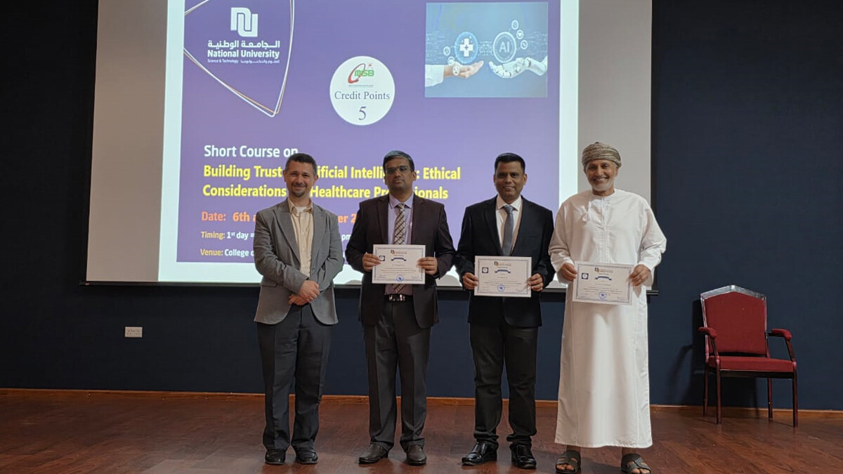 The College of Pharmacy (CoP) successfully conducted a two-day short course on “Building Trust in AI: Ethical Considerations for Healthcare Professionals” on 6–7 December 2025 as part of the community engagement initiatives. The course was initiated and designed by Prof. Mullaicharam AR and Dr. Yaman Kassab, College of Pharmacy, National University and was OMSB-CPD accredited for 5 points. 21 participants from various universities and institutions attended, gaining insights into AI applications, ethics, and responsible use in healthcare.