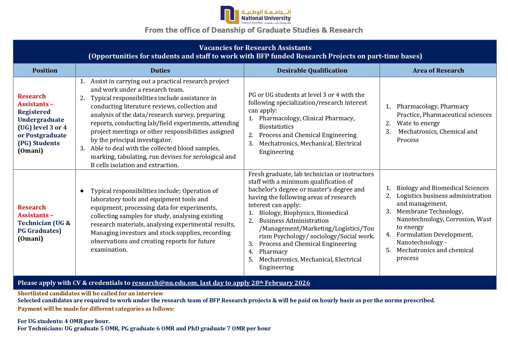 Vacancies for Research Assistants
